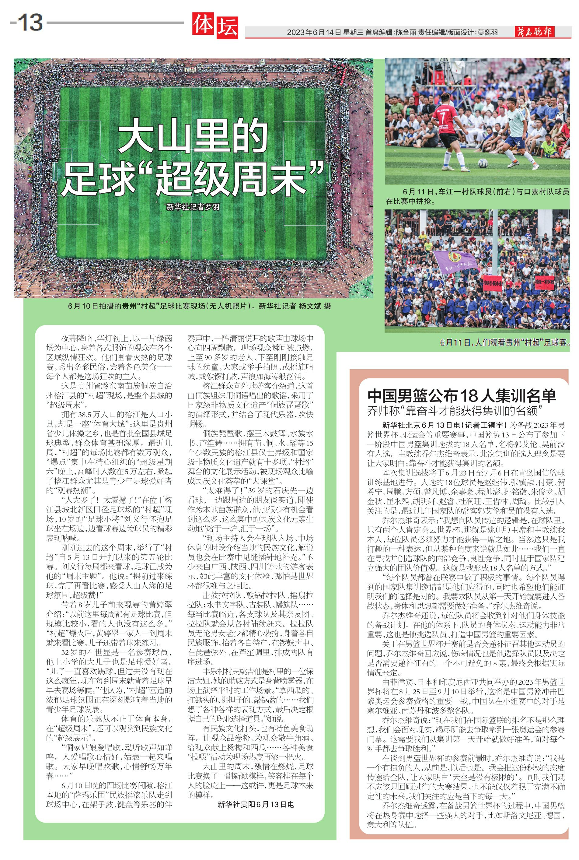 新华社北京6月13日电(记者王镜宇)为备战2023年男篮世界杯、亚运会等重要赛事,中国篮协13日公布了参加下一阶段中国男篮集训选拔的18人名单,名将郭艾伦、吴前没有入选。主教练乔尔杰维奇表示,此次集训的选人理念是要让大家明白:靠奋斗才能获得集训的名额。