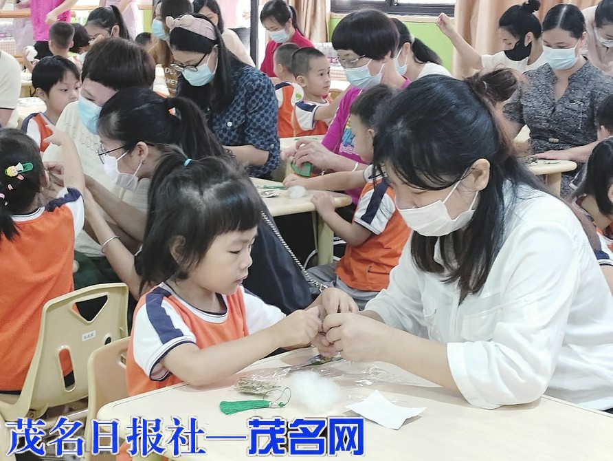 亲子手工制作粽子佩件。茂名晚报记者梁奈摄
