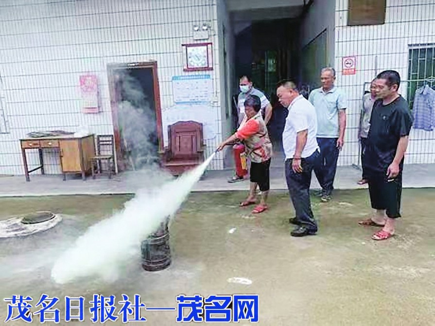 敬老院老人学习使用灭火器。通讯员邝伟云摄