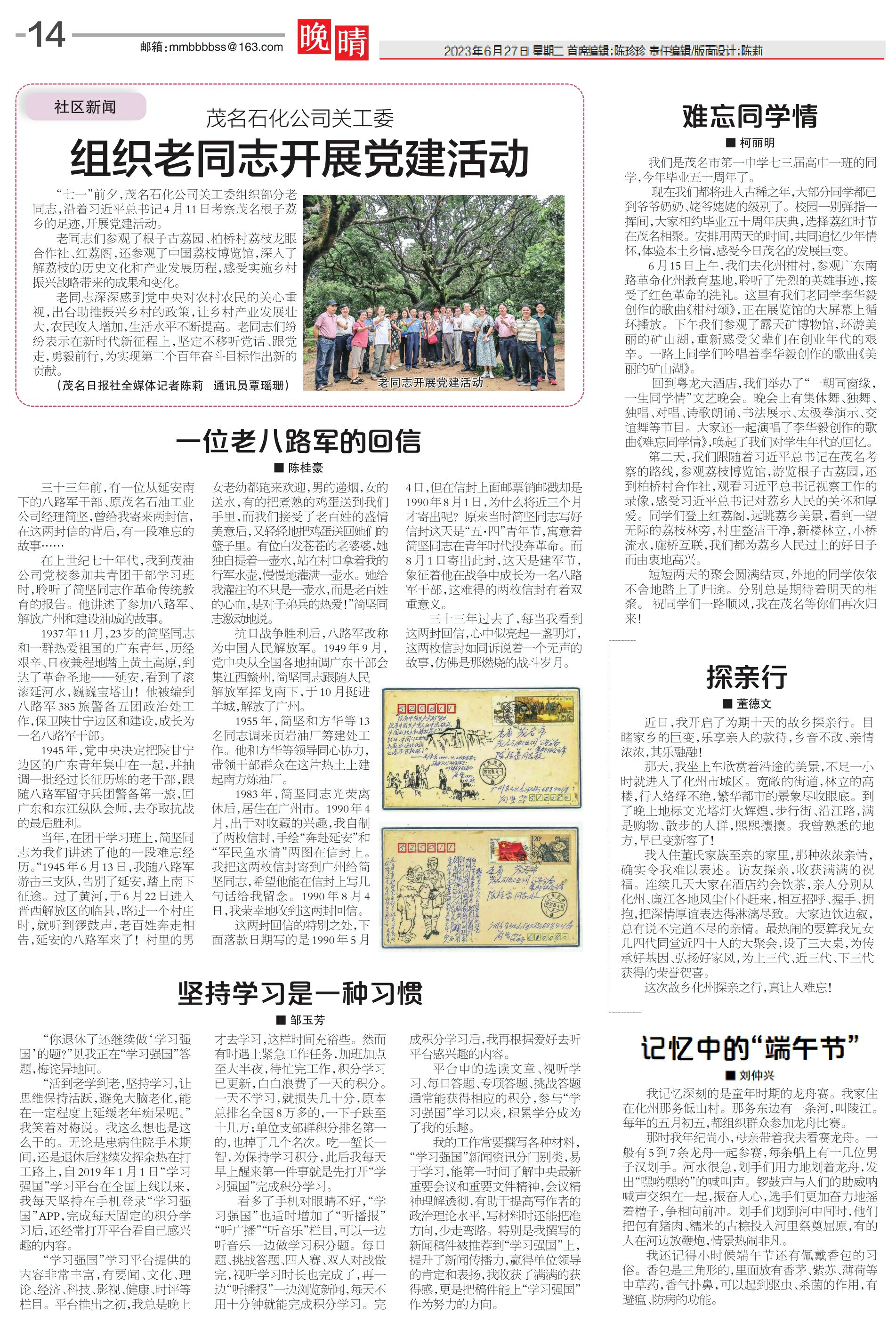 茂名石化公司关工委组织老同志开展党建活动