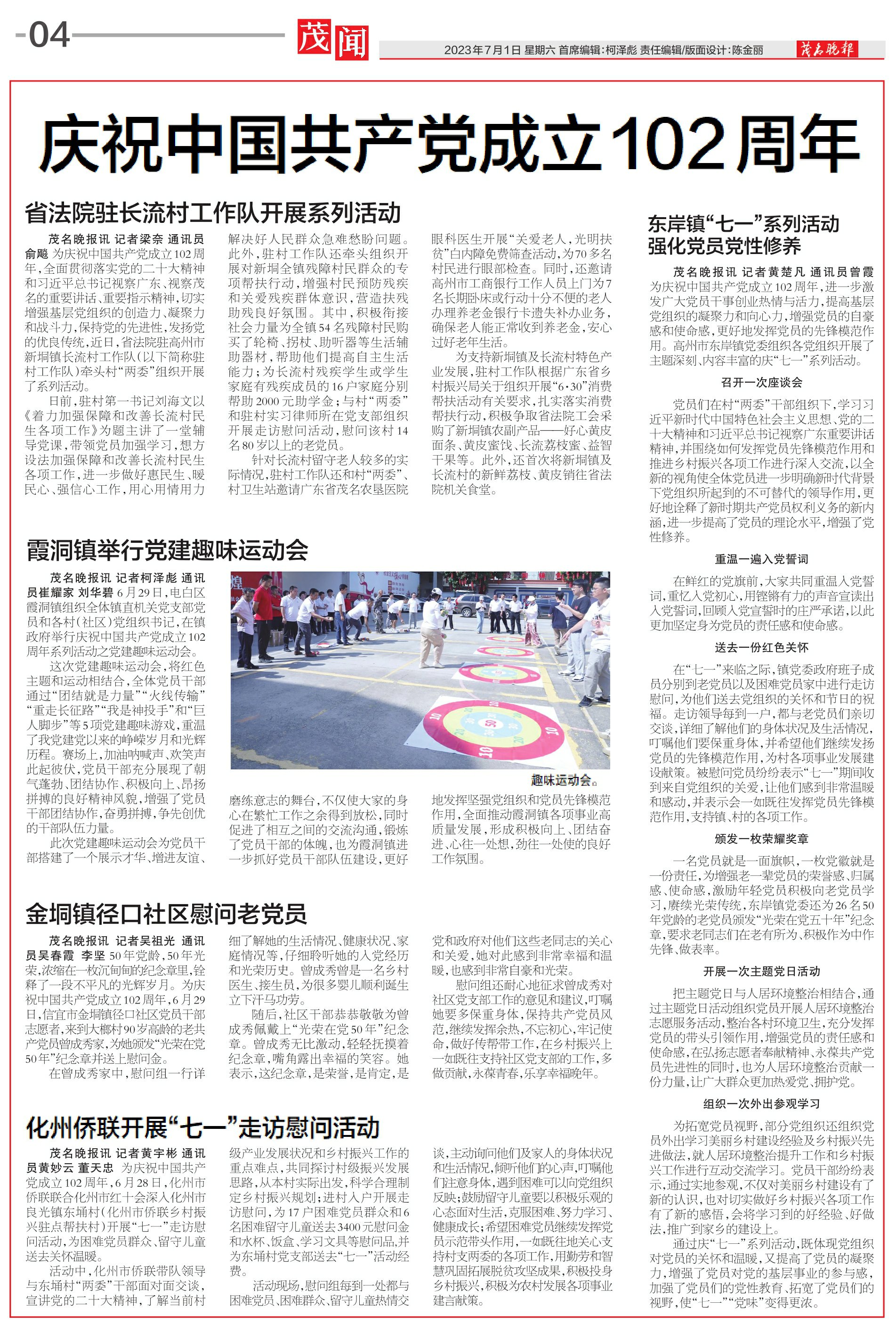 茂名晚报讯记者柯泽彪通讯员崔耀家刘华碧6月29日,电白区霞洞镇组织全体镇直机关党支部党员和各村(社区)党组织书记,在镇政府举行庆祝中国共产党成立102周年系列活动之党建趣味运动会。