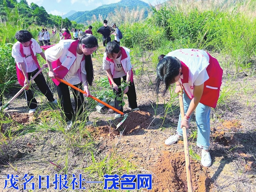 毕业生们动手种下毕业纪念树。茂名晚报通讯员信教 摄