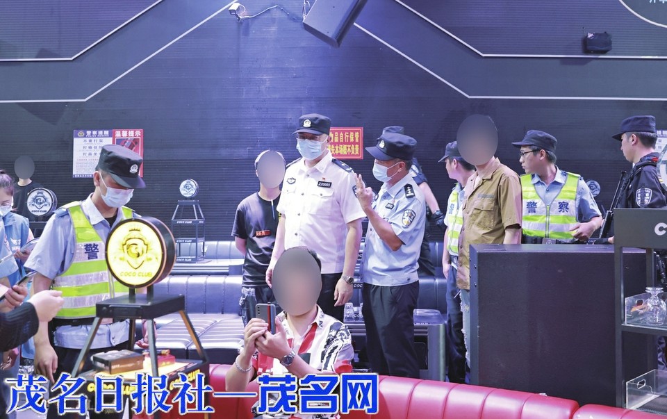 茂名市公安局领导在滨海新区某酒吧督导检查清查行动。通讯员黄美梓摄
