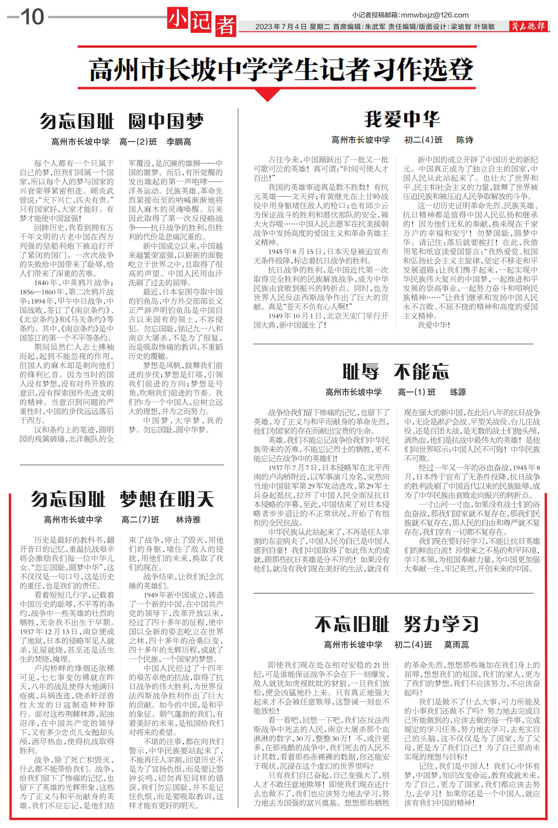 不忘旧耻 努力学习