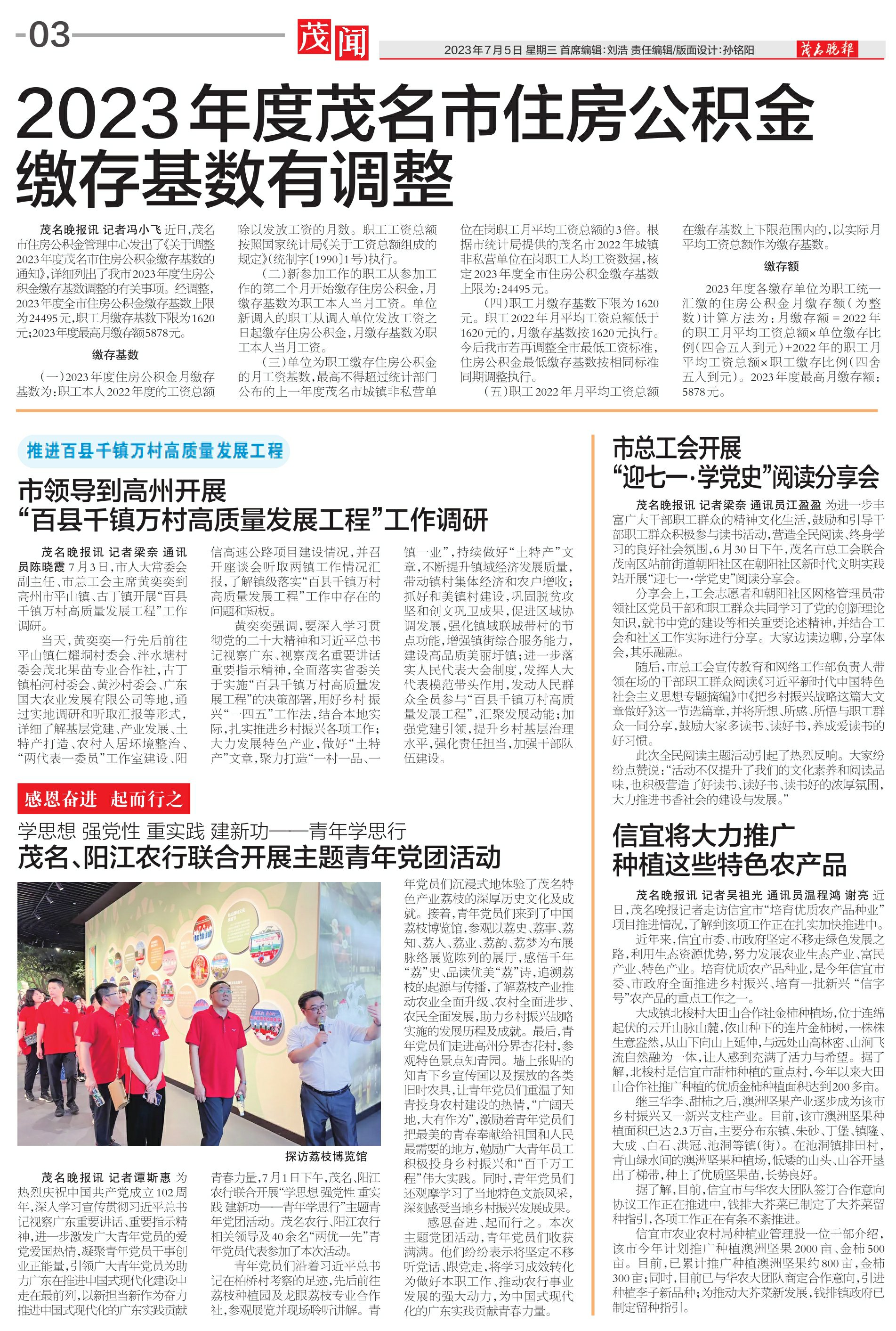 信宜市农业农村局种植业管理股一位干部介绍,该市今年计划推广种植澳洲坚果2000亩、金柿500亩。目前,已累计推广种植澳洲坚果约800亩,金柿300亩;同时,目前已与华农大团队商定合作意向,引进种植李子新品种;为推动大芥菜新发展,钱排镇政府已制定留种指引。