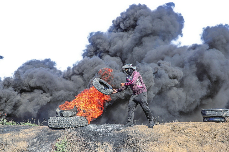 ▲ 7月 3 日,在以色列与加沙边境附近,巴勒斯坦抗议者燃烧轮胎。新华社发(里泽克·阿卜杜勒贾 瓦 德摄)