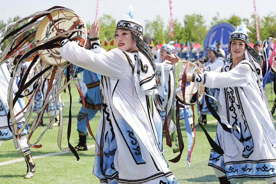 赫哲族选手身着传统服饰进行表演。新华社记者石枫摄