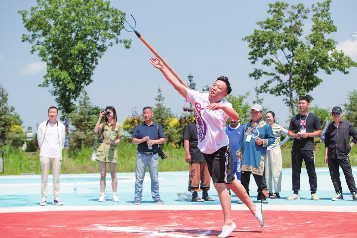 赫哲族选手参加叉鱼比赛。新华社记者张涛摄