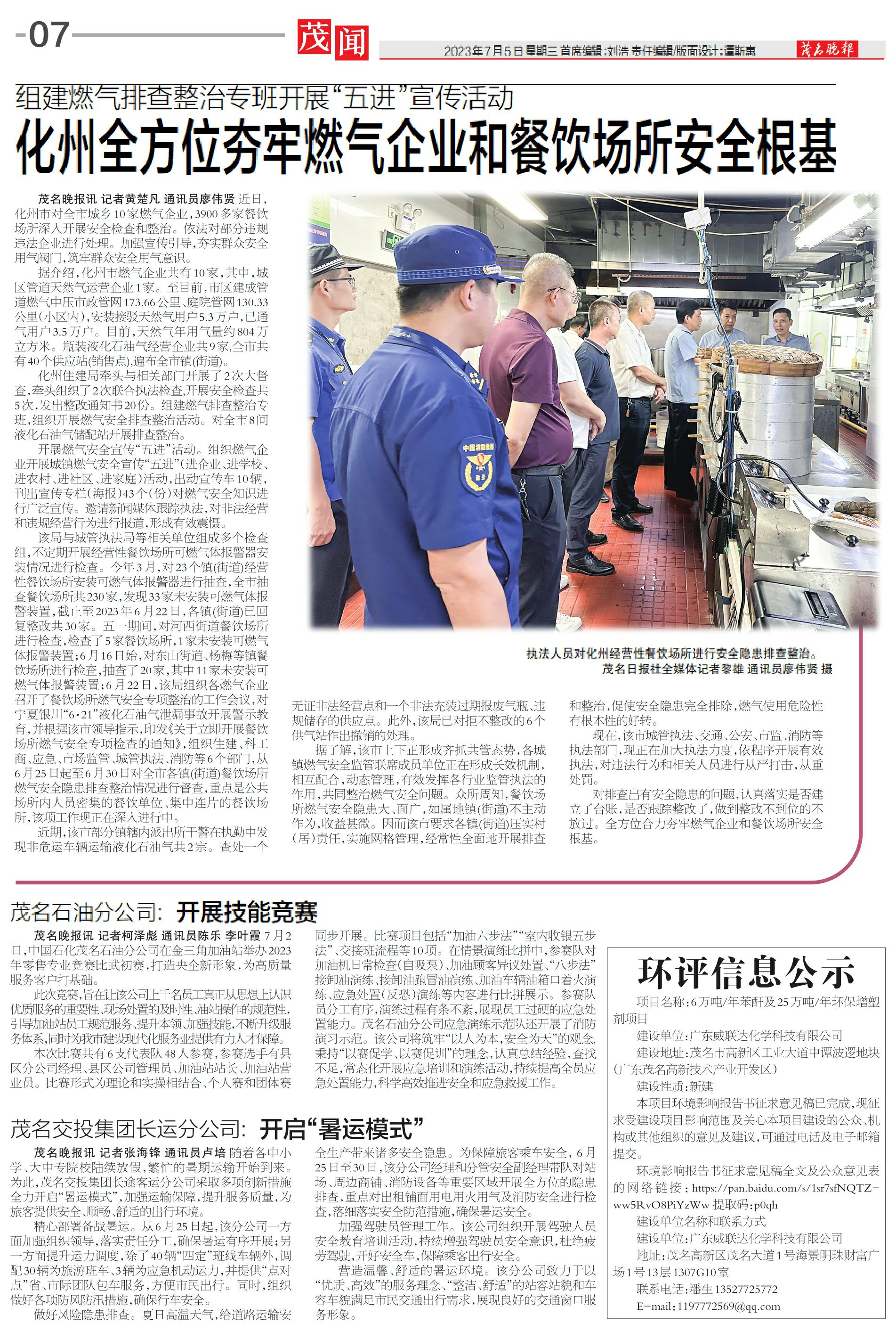 化州全方位夯牢燃气企业和餐饮场所安全根基