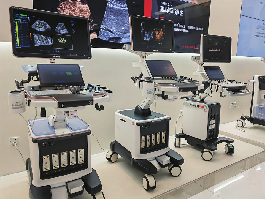 ▲迈瑞医疗展厅内陈列的医疗器械。新华社记者周颖摄