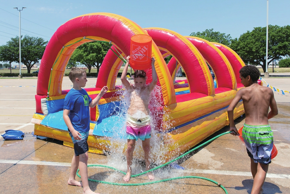 2023年6月27日,在美国得克萨斯州达拉斯市郊,儿童在玩水。近日,美国得克萨斯州迎来高温天气,达拉斯气温达到华氏115度(约合46摄氏度)。 新华社发(田丹摄)