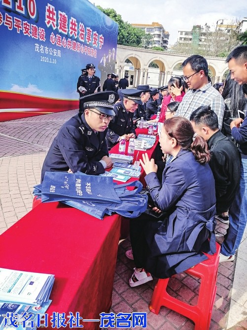 民警在广场摆摊宣传反诈工作。