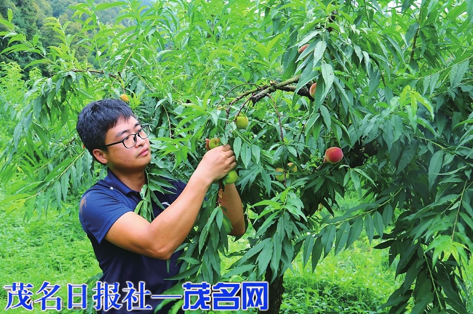 三月桃花迷人眼,七月桃子甜心间。盛夏果实,少不了鲜甜的鹰嘴桃。近日,茂名晚报记者走进金垌镇上磨村的鹰嘴桃种植基地,只见一棵棵高大的桃树上挂着一个个鹰嘴似的桃子,果色青中透红,果实散发着丝丝甜蜜清香,分外诱人,吸引果农和游客前往采摘。
