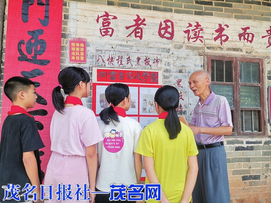同时,程寿煌还通过黑板诗和撰写文章,积极宣传“红斗”故事,传承红色基因。据了解,八块垌老家是解放战争时期朱砂革命游击队的联络站,程寿煌祖父程宝记是联络站负责人。1949年秋,游击队来八块垌活动,用村民程万全家的木斗量米分给群众。程万全家的木斗因此被人们称为红斗,现存茂名市博物馆。