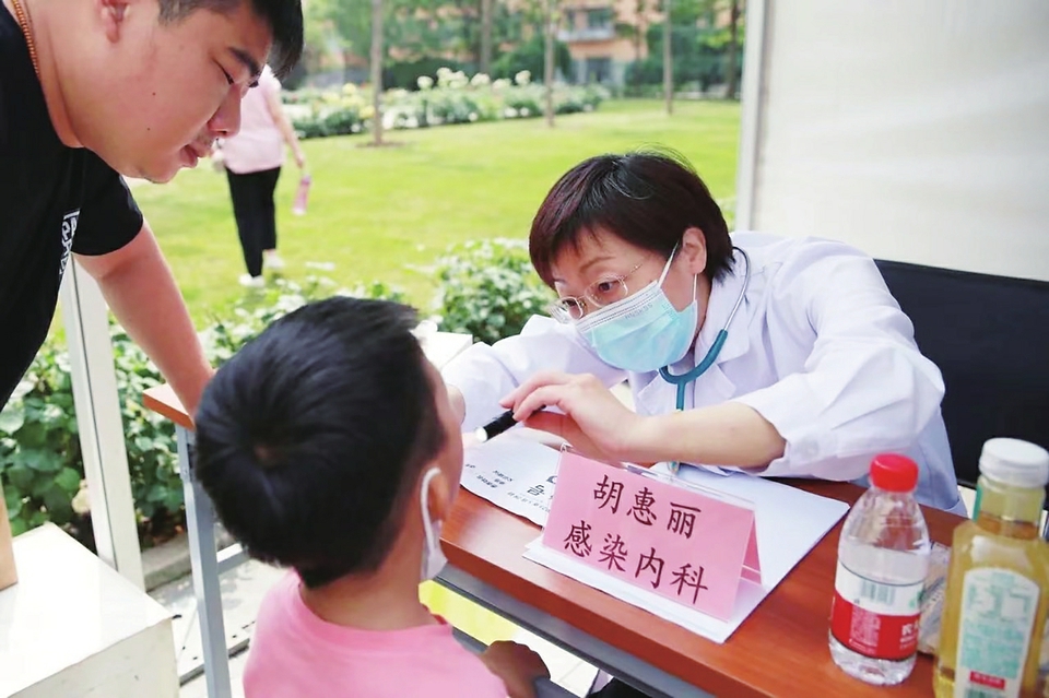 国家儿童医学中心、首都医科大学附属北京儿童医院感染内科主任医师胡惠丽为患儿义诊。(受访者供图)