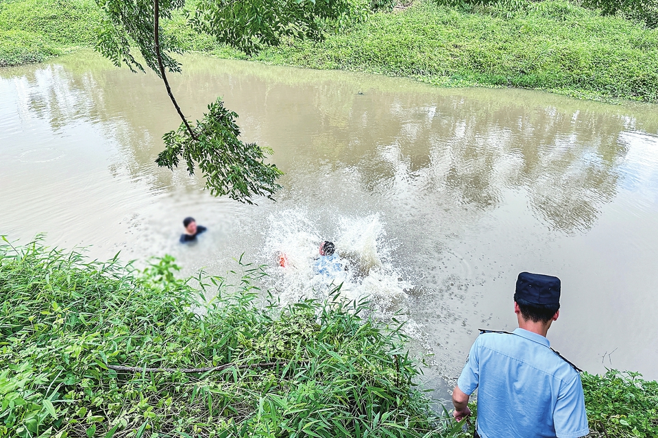 警员奋不顾身跳下河救人。通讯员杨金龙 摄