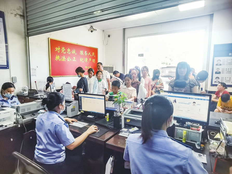 不少家长带着孩子到派出所办理身份证。茂名晚报通讯员 茂公宣摄