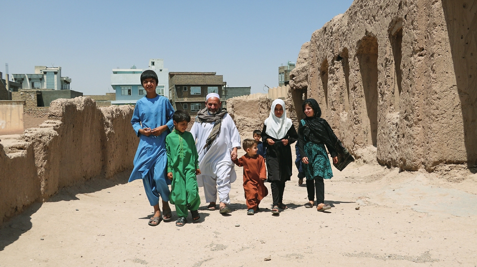 7月15日,当地村民走在阿富汗赫拉特省赫拉特市沙提尔堡村内,该村庄曾于2001年遭到美军集束炸弹袭击。新华社发(马沙勒摄)
