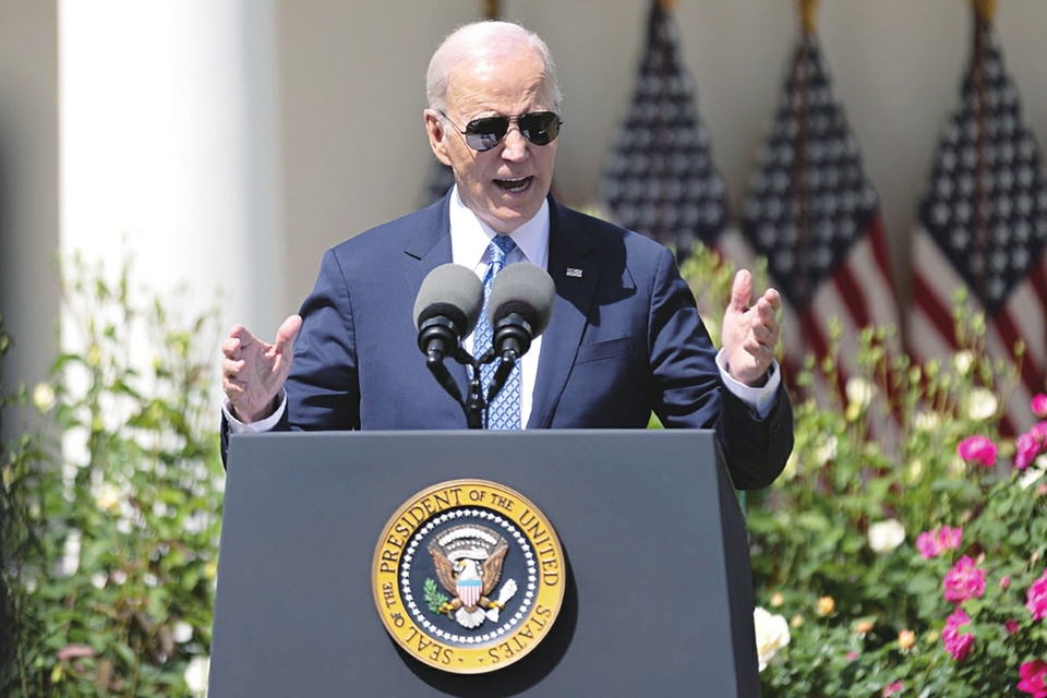 4月24日,在美国首都华盛顿白宫,美国总统拜登在一场活动上讲话。新华社发(亚伦摄)