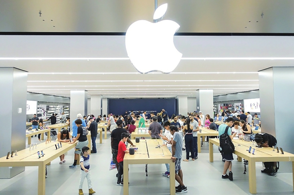 2018年8月2日,顾客在美国纽约一家苹果专卖店选购商品。新华社记者王迎摄