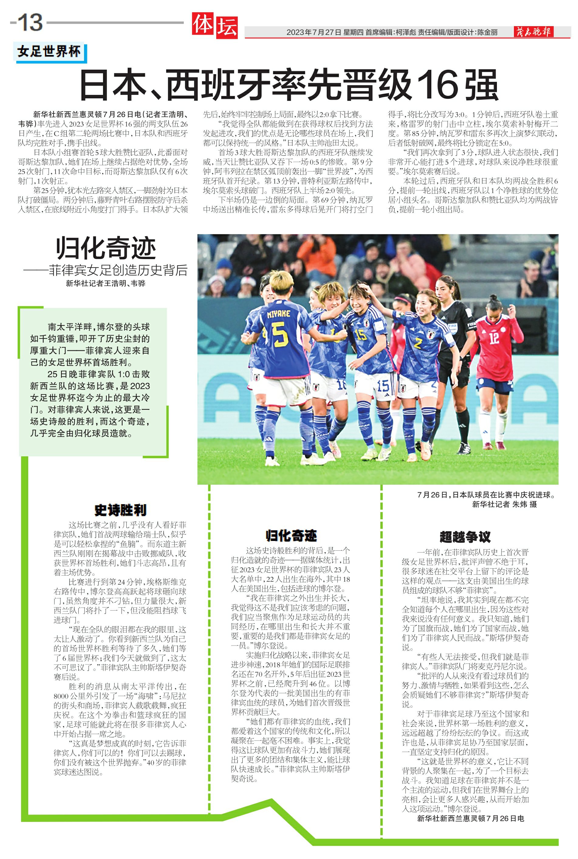 日本、西班牙率先晋级16强