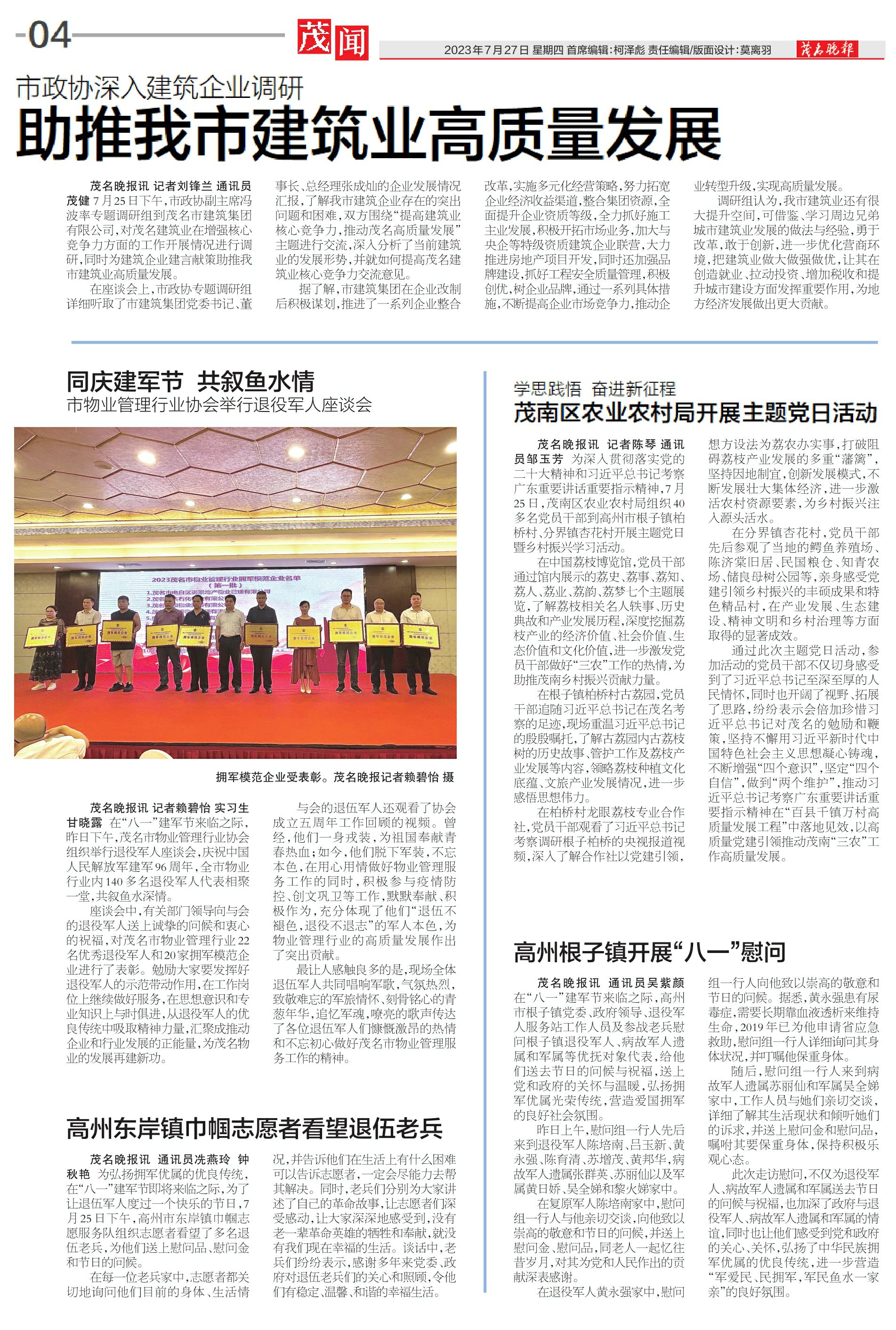 高州根子镇开展“八一”慰问