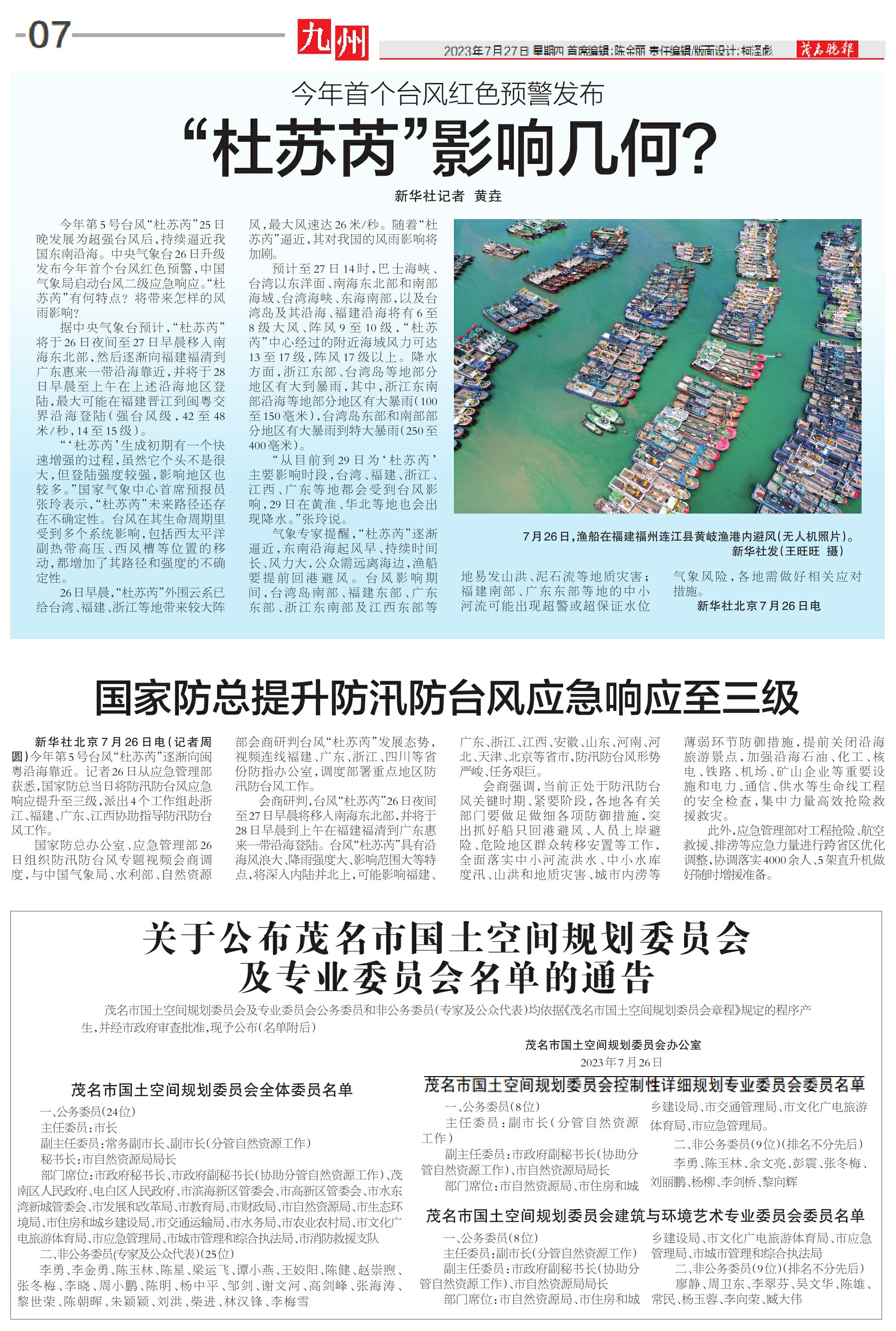 关于公布茂名市国土空间规划委员会及专业委员会名单的通告
