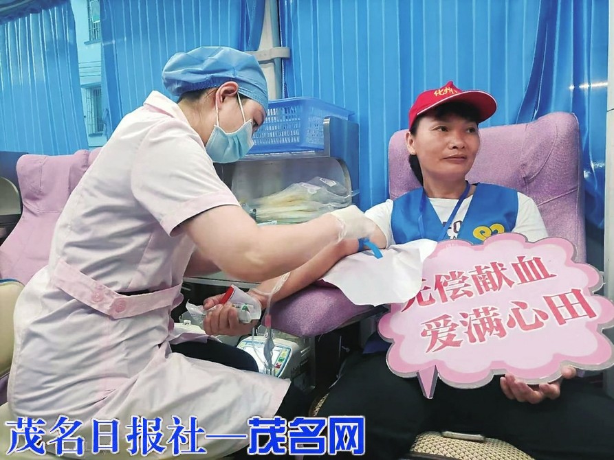 义工助力无偿献血活动。茂名晚报记者吴祖光摄