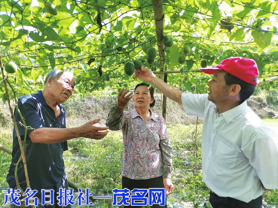老夫妇与其种植的罗汉果。 茂名晚报记者吴祖光摄