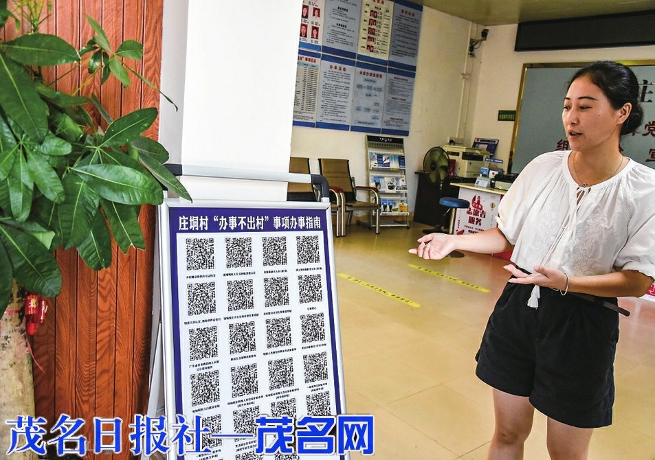 庄垌村村干部介绍如何通过二维码办理业务。茂名日报社全媒体记者黎雄摄