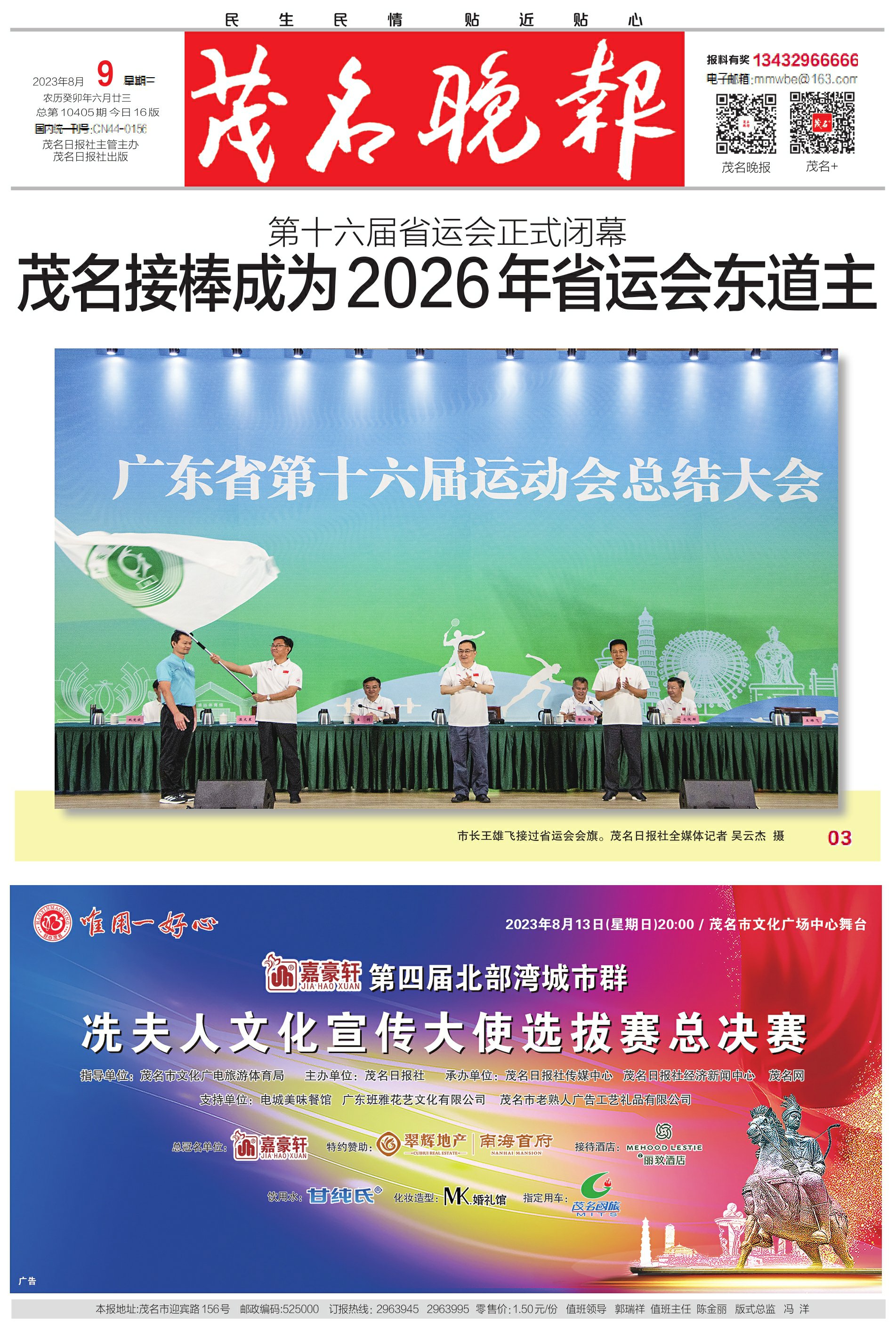 茂名接棒成为2026年省运会东道主