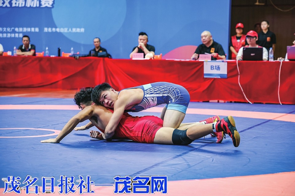 茂名晚报讯 记者张丁文 8月14日,2023年广东省青少年摔跤锦标赛在电白区体育馆拉开战幕,茂名市代表队在首日比赛中获得两个第二名,一个第三名。