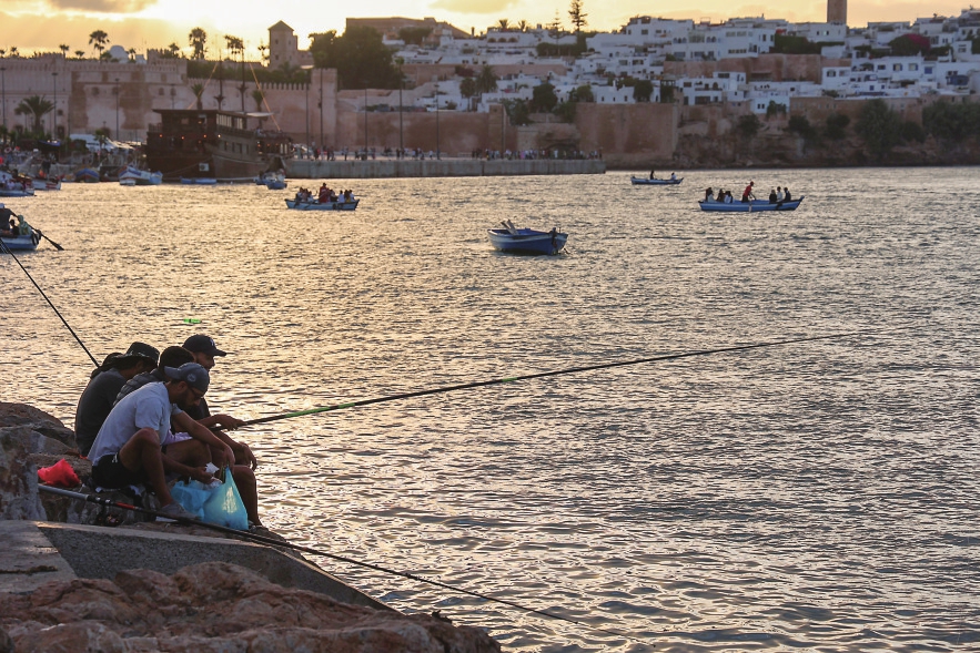 7月7日,人们在摩洛哥首都拉巴特的河边垂钓。新华社记者霍晶摄