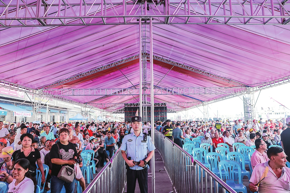 茂名晚报讯记者刘锋兰通讯员陈诗韵人潮涌动,千帆竞发。8月16日,第七届南海(茂名博贺)开渔节在茂名市滨海新区博贺港码头举行。为确保活动安全顺利进行,茂名、滨海两级公安机关建立层级指挥体系,出动治安、交警、特警、义警等安保执勤力量约500余名,为近10万群众保驾护航。活动期间,辖区刑事、治安警情为零。