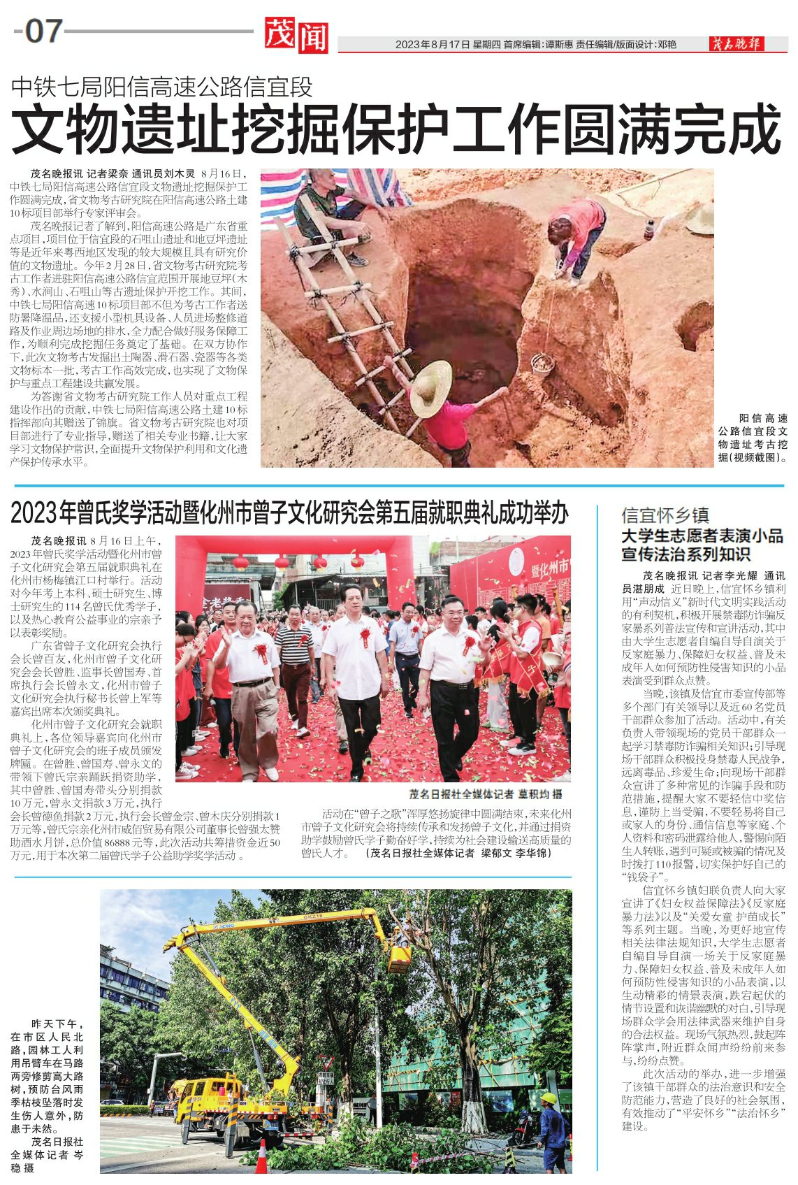 茂名晚报讯记者梁奈通讯员刘木灵 8月16日,中铁七局阳信高速公路信宜段文物遗址挖掘保护工作圆满完成,省文物考古研究院在阳信高速公路土建10标项目部举行专家评审会。