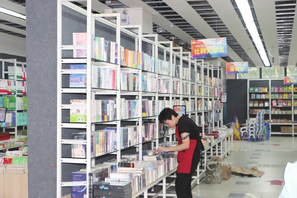 书香工作人员书香节前忙于整理新书籍。茂名日报社全媒体记者吴云杰摄
