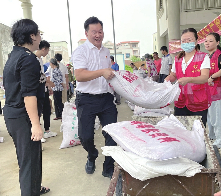 黄灶涛表示,本次活动所需的花生粕全部为珠海帮扶产业弘和花生油生产基地的副产品。驻镇帮扶工作队经过前期深入走访摸查,收集了全镇近700户脱贫户种植、养殖底数,并科学测算出每户所需的花生粕数量。接下来工作队还将陆续到各村居发放花生粕24150斤,覆盖脱贫户142户,并向全镇8家重点扶持的产业基地低价供应花生粕32000斤,协助其尽快恢复灾后生产。8家产业基地也将在工作队的组织下通过精准帮扶反哺至缺少土地或劳动力的脱贫户,让产业发展的红利惠及脱贫户全体。“帮扶资金助推花生油基地扩大经营,花生油基地的副产品带动相关产业发展,而产业的发展则必须反哺群众脱贫增收,这是帮扶工作的根本出发点。”黄灶涛对此有深刻的认识,“我们的帮扶力量在乡村振兴面前其实是很微不足道的,真正的发展动力一直就蕴含在当地的人和土地上。所以更多时候要找到一个合适的切入点,用小力量去撬动大动力,从而逐步去改善、扭转、发展、振兴。”