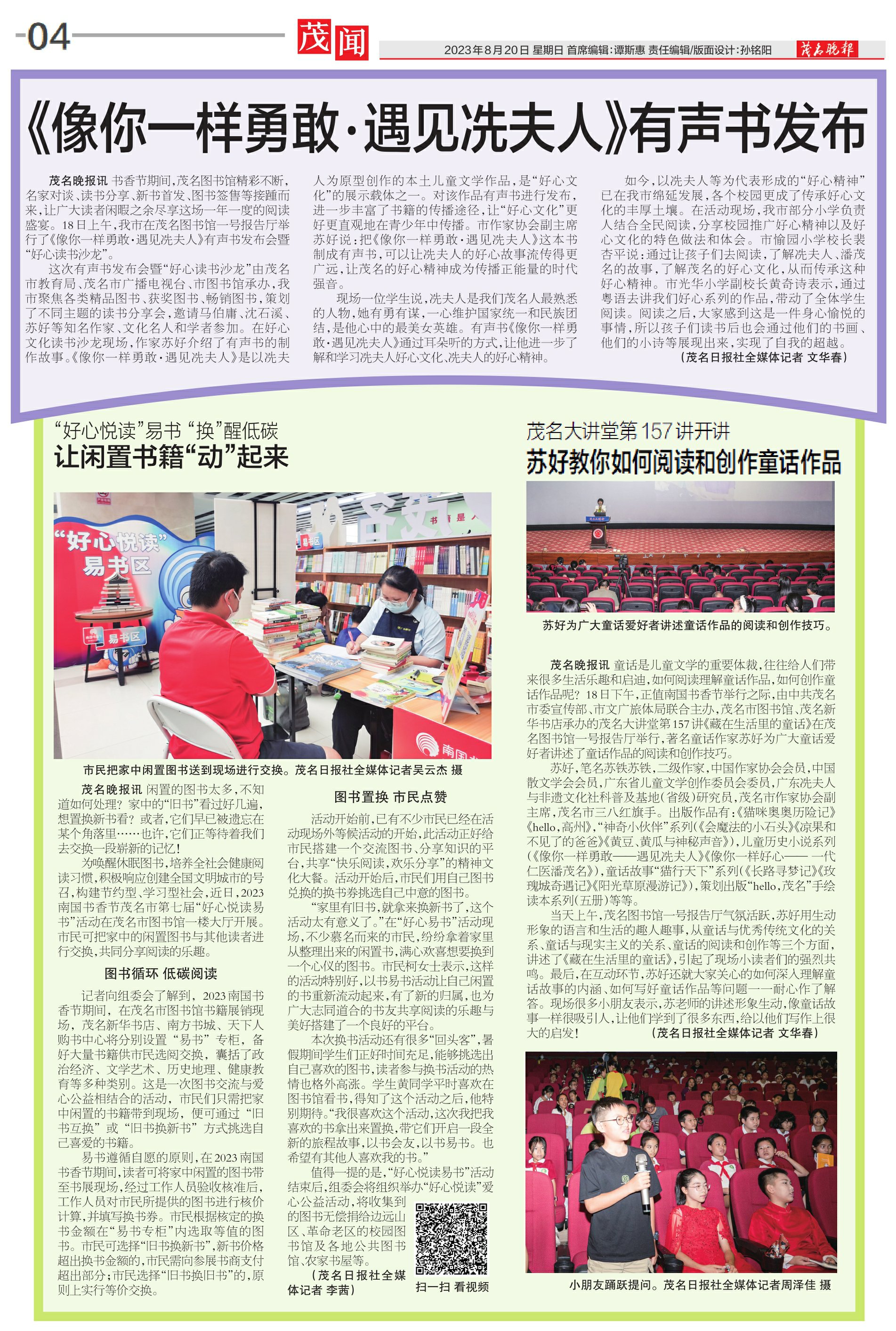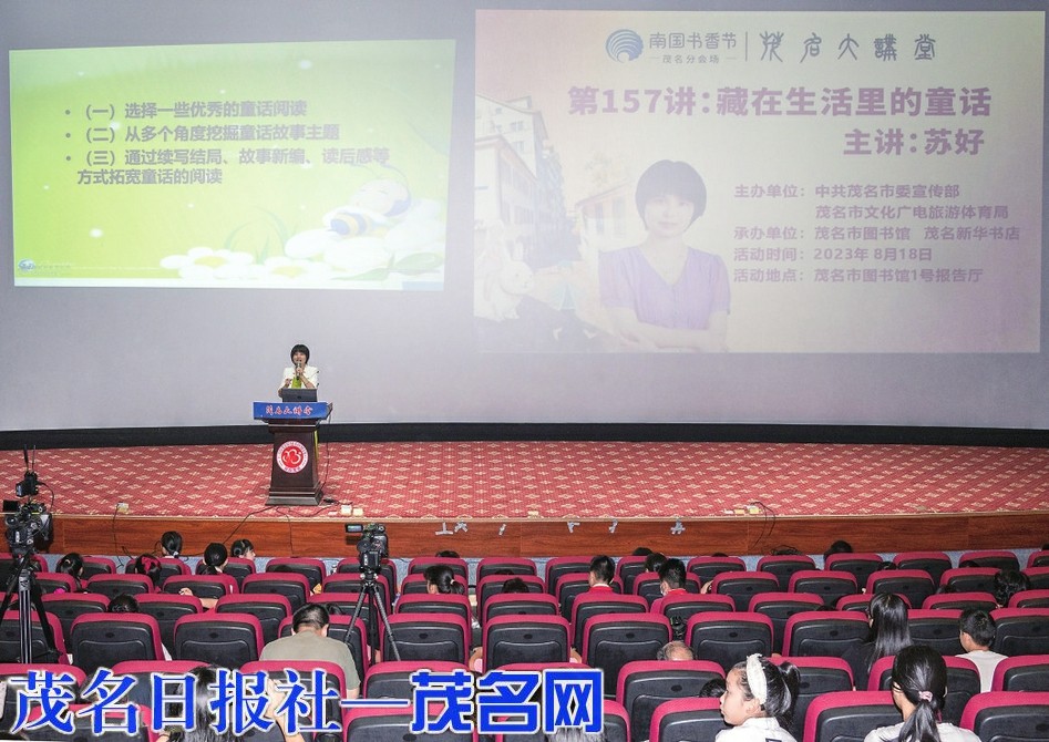 茂名晚报讯童话是儿童文学的重要体裁,往往给人们带来很多生活乐趣和启迪,如何阅读理解童话作品,如何创作童话作品呢?18日下午,正值南国书香节举行之际,由中共茂名市委宣传部、市文广旅体局联合主办,茂名市图书馆、茂名新华书店承办的茂名大讲堂第157讲《藏在生活里的童话》在茂名图书馆一号报告厅举行,著名童话作家苏好为广大童话爱好者讲述了童话作品的阅读和创作技巧。