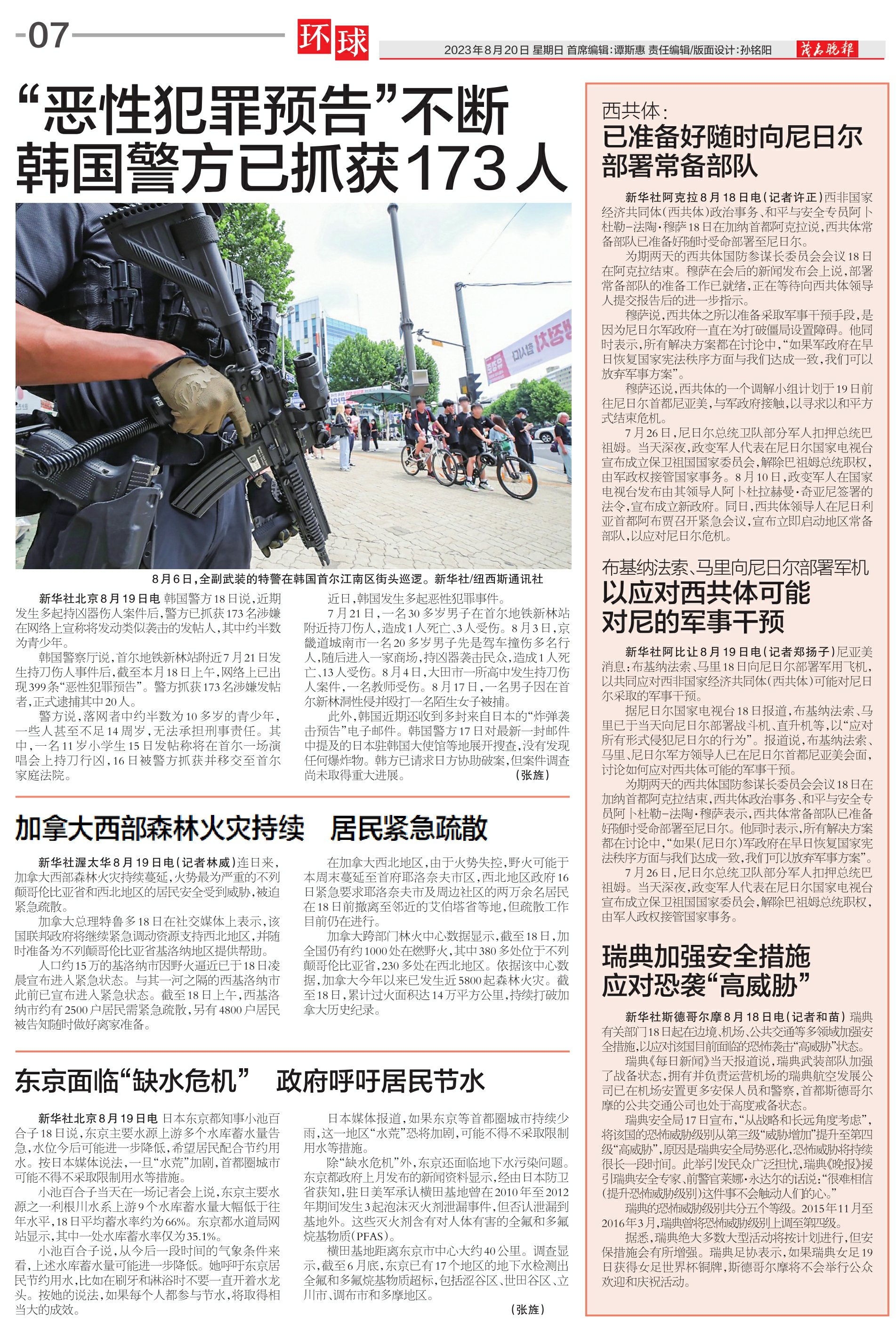 “恶性犯罪预告”不断韩国警方已抓获173人