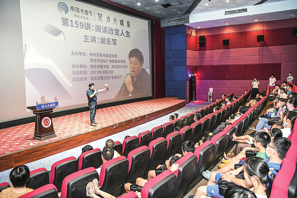 茂名晚报讯 作为2023年南国书香节茂名分会场系列活动之一,8月20日下午,“茂名大讲堂”第159讲在茂名市图书馆1号报告厅举行,中国作家协会会员谢乐军以“阅读改变人生”为题,讲述自己阅读亲身经验,传授培养良好阅读习惯的秘诀,分享创作寓言故事的心得体会,开启孩子的智慧人生,深受孩子的喜爱。