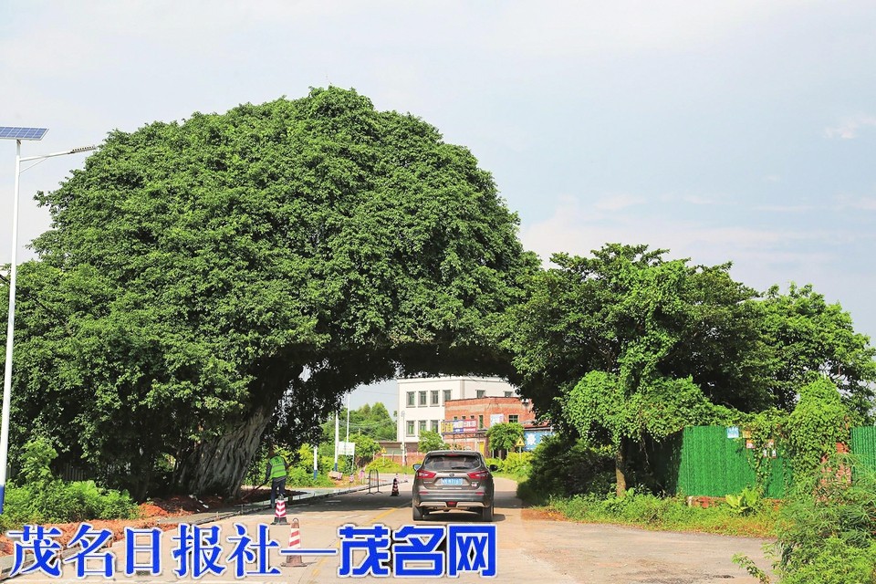 在茂南区公馆镇横山村委会,县道x622周屋村路段有一棵“迎宾门”大榕树,长势枝繁叶茂,形似一道迎宾拱门,过往车辆行人穿行其中,别有一番风景。茂名日报社全媒体记者岑稳摄