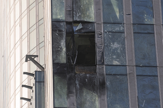 这是8月23日在俄罗斯首都莫斯科拍摄的受损建筑。新华社记者白雪骐摄