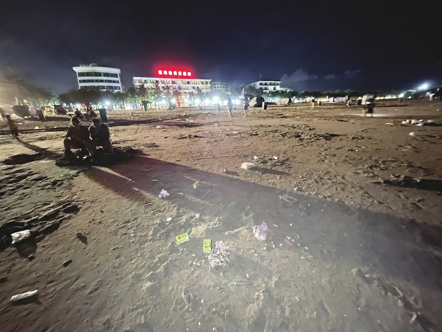当晚恰逢七夕,晚上7点半后前来中国第一滩的市民游客陆续增加,晚上近10点沙滩上仍有不少人在踏浪吹海风,不时传来阵阵欢声笑语,从远处看去一派和谐景象。可是,当记者走近沙滩漫步时,被黑暗夜色遮挡的沙滩垃圾逐渐现形,每走几步就可看到白色或红色的塑料袋、饮料盒、透明餐盒盖、吸管、废弃纸巾、椰子壳……各类垃圾都有,不仅大煞风景,而且容易被小孩子误捡起吞食。还有市民游客吃完海鲜后,直接把虾壳、鱼刺扔沙滩上,更有甚者将整袋垃圾扔在沙滩上。有市民表示,很讨厌在沙滩上乱扔垃圾的人,这种不文明的行为非常不可取,既破坏了环境,还可能会让外地游客留下不好的印象,希望大家能自觉一些,从不乱扔垃圾做起。