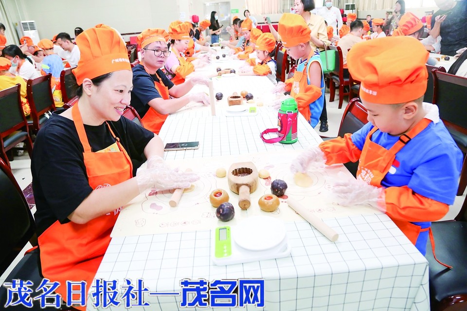 家长和孩子学习制作月饼。茂名日报社全媒体记者李颜东摄