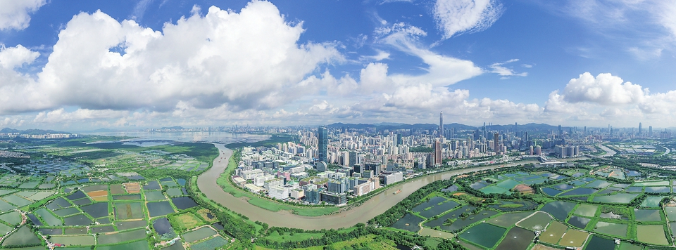 这是深圳河两岸的河套深港科技创新合作区深圳园区和香港落马洲河套地区(无人机全景照片,2023年8月23日摄)。 新华社记者梁旭摄