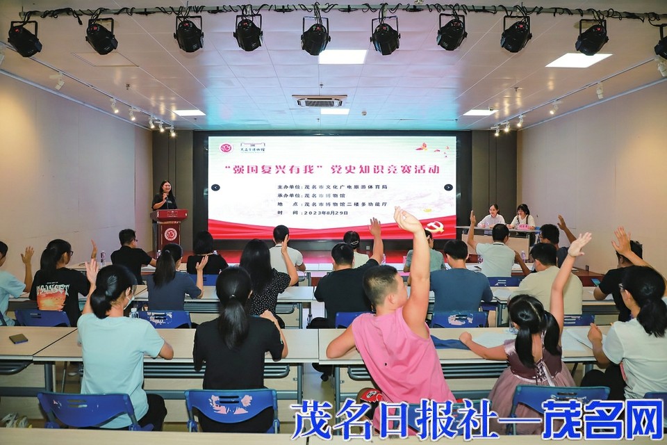 茂名晚报讯记者张丁文实习生甘晓露 学史明理、学史增信、学史崇德、学史力行。8月 29 日上午,由茂名市文化广电旅游体育局主办,茂名市博物馆承办的“强国复兴有我”党史知识竞赛活动在茂名市博物馆举行,志愿者、学生、市博物馆干部职工参加了活动。
