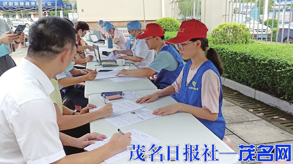 化州义工协助开展献血活动。茂名晚报记者吴祖光摄