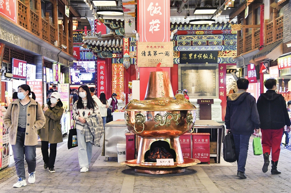 “登上二楼把什刹海美景尽收眼底。”翻看鸦儿李记·涮肉(银锭桥店)在大众点评上的评价,“中轴景观”也是这家店的一大亮点。“不少消费者在点评的时候,会把银锭桥、什刹海等中轴线景色写进推荐理由,帮我们讲好美食背后的‘中轴文化’,也为我们带来更多关注和客流。”鸦儿李记·涮肉银锭桥店有关负责人说。