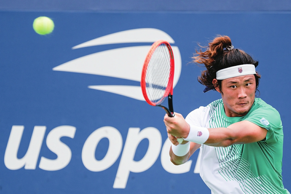 8月28日,张之臻在比赛中回球。 新华社记者刘杰摄