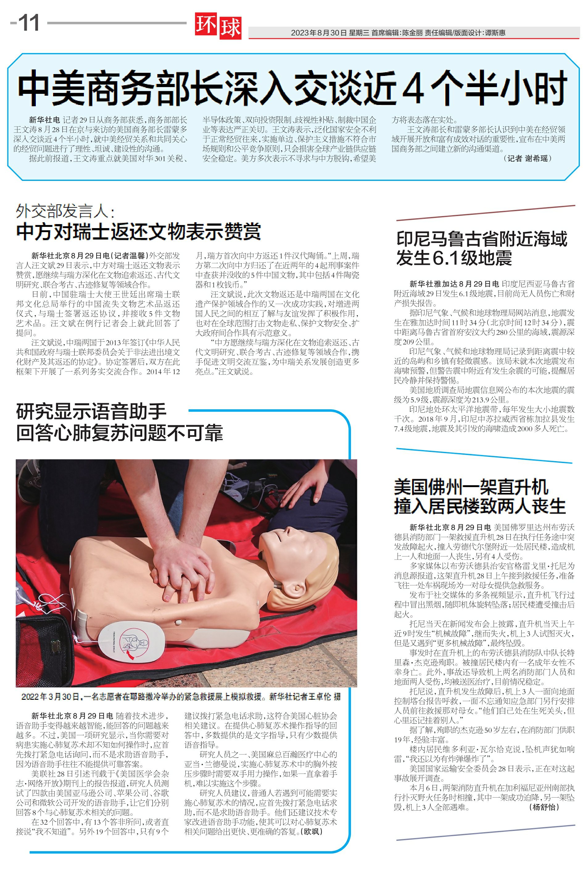 中美商务部长深入交谈近4个半小时